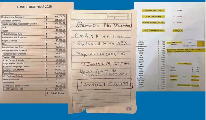 Los registros obtenidos por medios mexicanos detallan que, solo en diciembre de 2025, el CJNG habría reportado ganancias de alrededor de 8,781,353 pesos mexicanos (aproximadamente 492,000 dólares estadounidenses) por la venta de marihuana, cocaína, metanfetaminas y fentanilo en la región de Tapalpa, así como ingresos por el control de máquinas tragamonedas en la zona. Al mismo tiempo, los costos de operación en ese municipio ascendieron a 1,389,690 pesos (alrededor de 78,000 dólares), según los documentos.