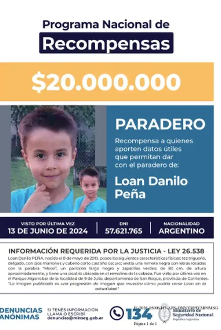 La decisión responde a pedidos formales elevados por las familias de los menores, quienes habían cuestionado la insuficiencia de los montos anteriores. En el caso de Loan Peña, desaparecido en Corrientes en junio de 2024, la recompensa original era de cinco millones de pesos. La querella había calificado esa cifra como “ridícula e ilógica”, especialmente al compararla con otros casos de personas desaparecidas y ante el tiempo transcurrido, que supera el año y medio. En Córdoba, la familia de Lian Flores, visto por última vez en febrero de 2025, también planteó la necesidad de incrementar el ofrecimiento, que inicialmente era de diez millones de pesos.