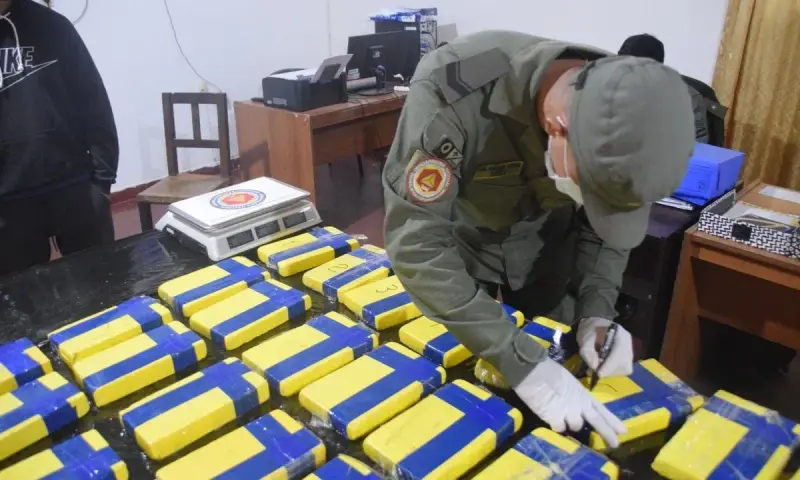 Tras el traslado del vehículo a la unidad operativa, los efectivos procedieron a una inspección minuciosa en presencia de testigos. Descargaron los cajones, que contenían aproximadamente 1.200 kilogramos de berenjenas. En el interior, ocultos entre la mercadería, encontraron 30 paquetes de forma rectangular, envueltos con cinta adhesiva de color amarillo.